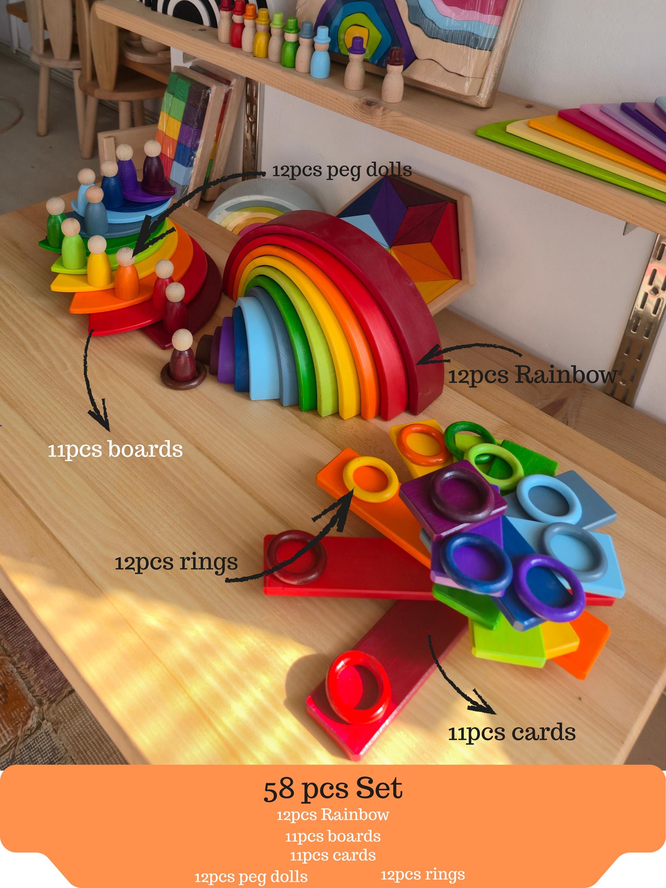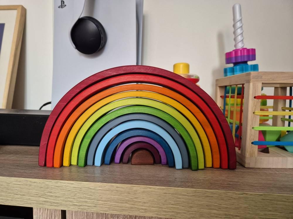 Stunning item! A beautiful addition to my boys playroom. So many ways to play with the rainbow. He absolutely loves it! He is only 1y old so I kept half the rainbow out and hid the larger parts for when he is older.