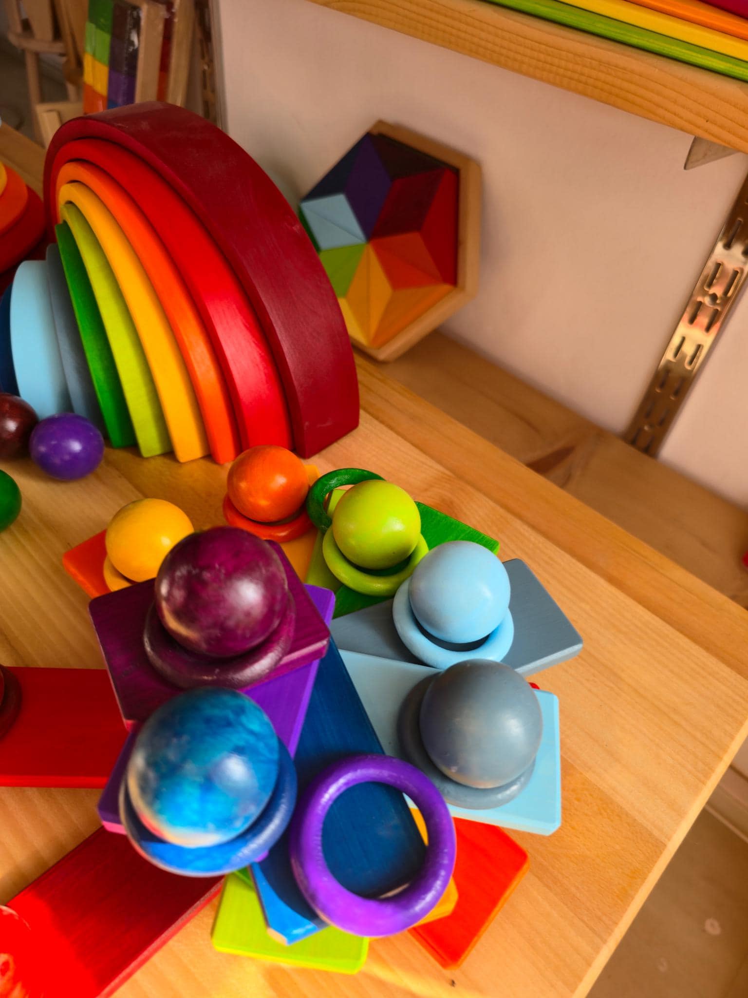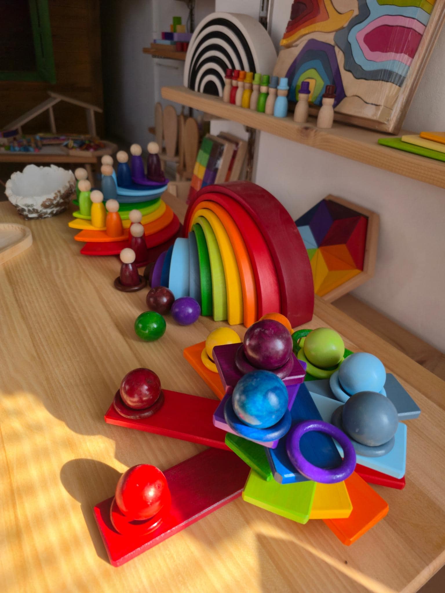Lovely wooden rainbow/color matching set for creative, open-ended play.